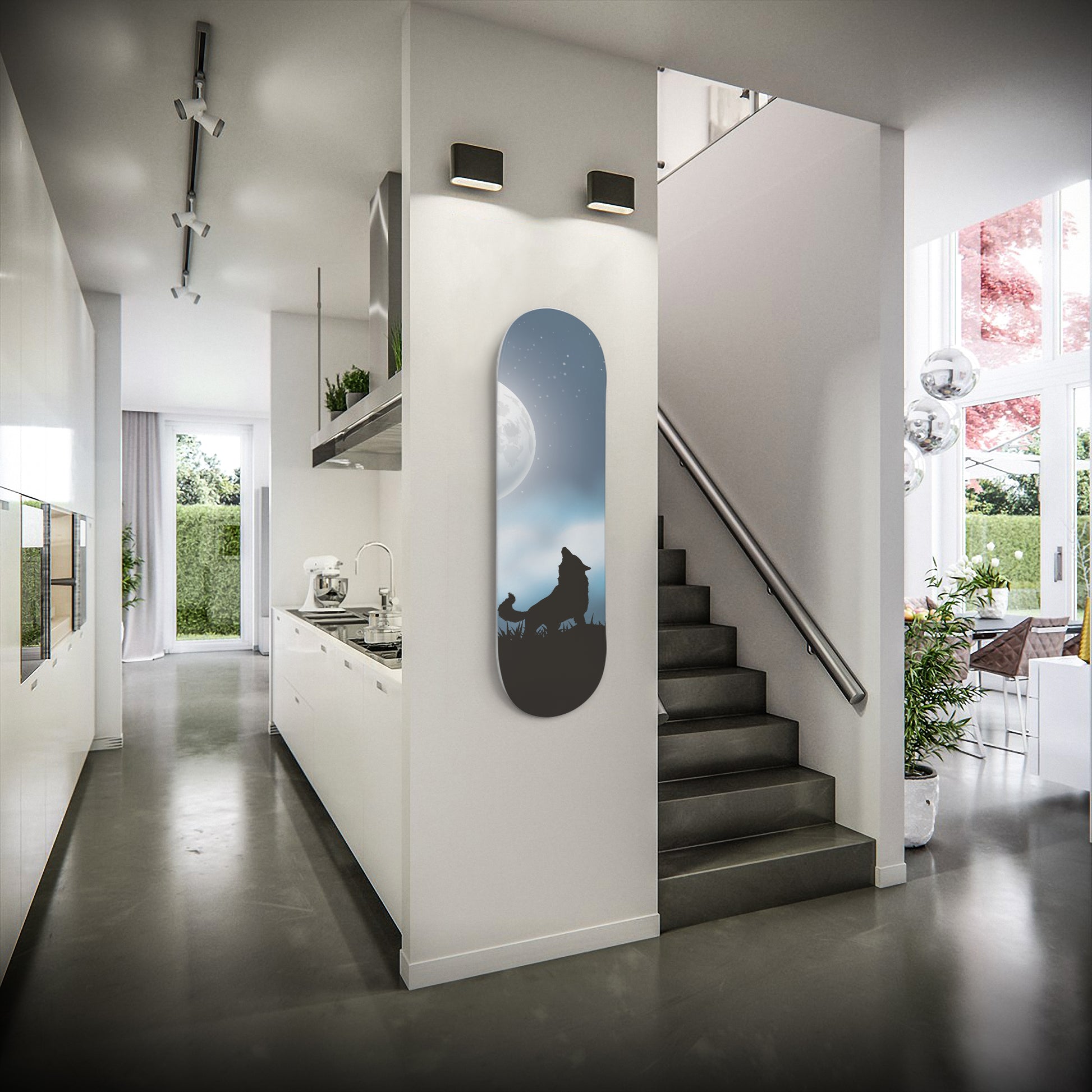 This high-quality 7-ply 100% maple skateboard is the perfect statement piece for any home or office. Custom printed graphics, one-of-a-kind art piece.
